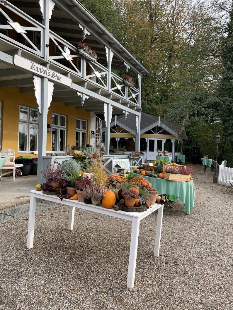 Vi har masser af gange nydt både middage og frokoster på stedet - og hver gang er vi ikke mindst blevet betaget af det smukt pyntede område foran restauranten, der altid uanset på hvilken tid på året, byder gæsterne velkommen på en indbydende måde. Og naturligvis også nu til Halloween, hvor man er gået all-in.