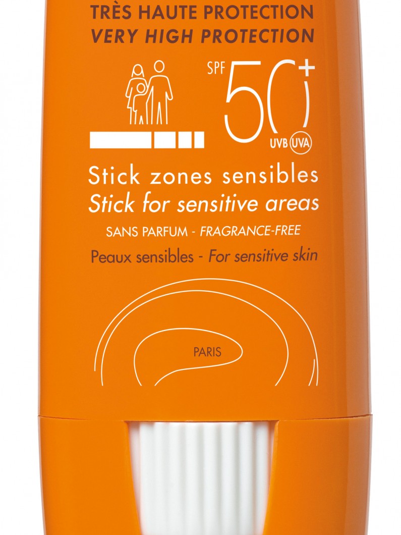 Avène Sun Stick SPF50+ er meget høj solbeskyttelse til brug på udsatte hudområder som næse, ører, friske ar o.lign. Stiften er meget vandfast og er derfor også god under sport. Den er uden parfume og velegnet til hele familien – og den er let at have med. 8 g vejl. pris kr. 124,50.