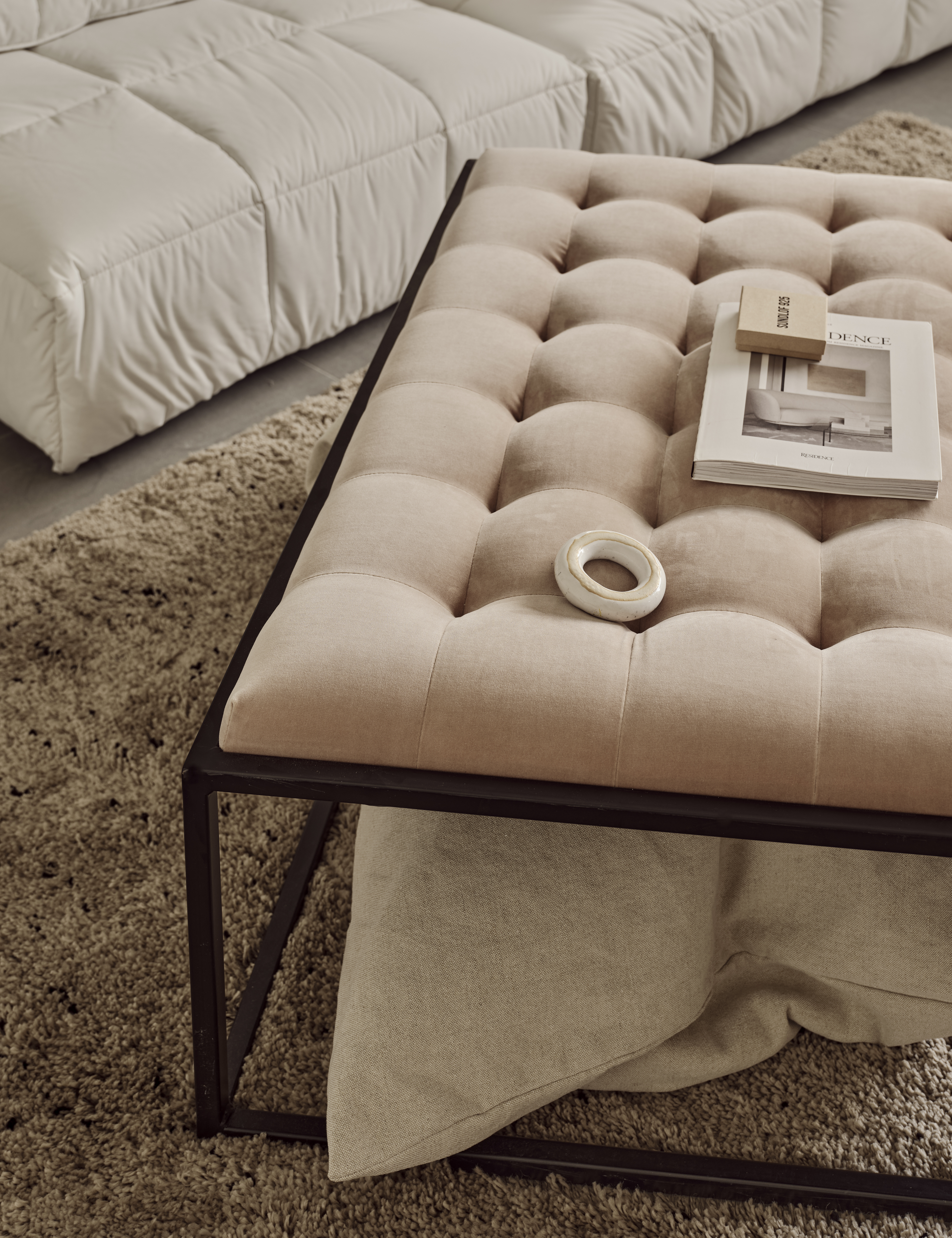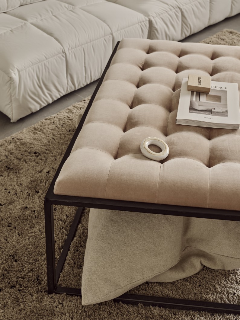 Stilen er derfor ideel til at skabe en behagelig atmosfære, hvor tidsløse klassikere i en rolig farvepalette som beige, brun og hvid pryder hjemmets rum - og lad det kvadratiske sofabord med en formfast polstret bordplade med indhæftede knapper skabe et behageligt udtryk i din stue.