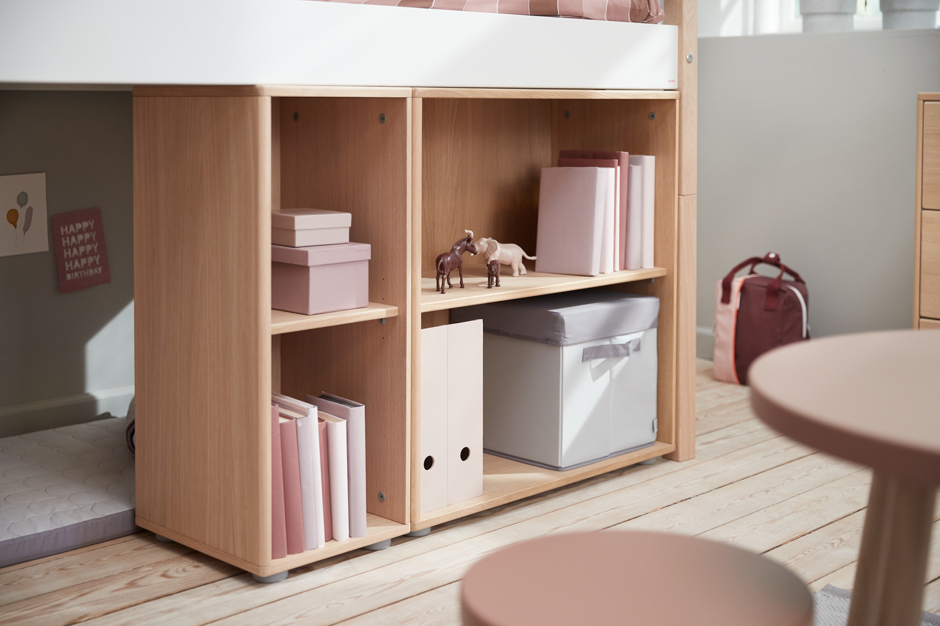 Det minimalistiske, rene udtryk kan mixes og matches med mange af de andre skønne møbler fra Flexas øvrige kollektioner, som for eksempel Play og vil tage sig skønt ud med de mange fine legeforhæng.