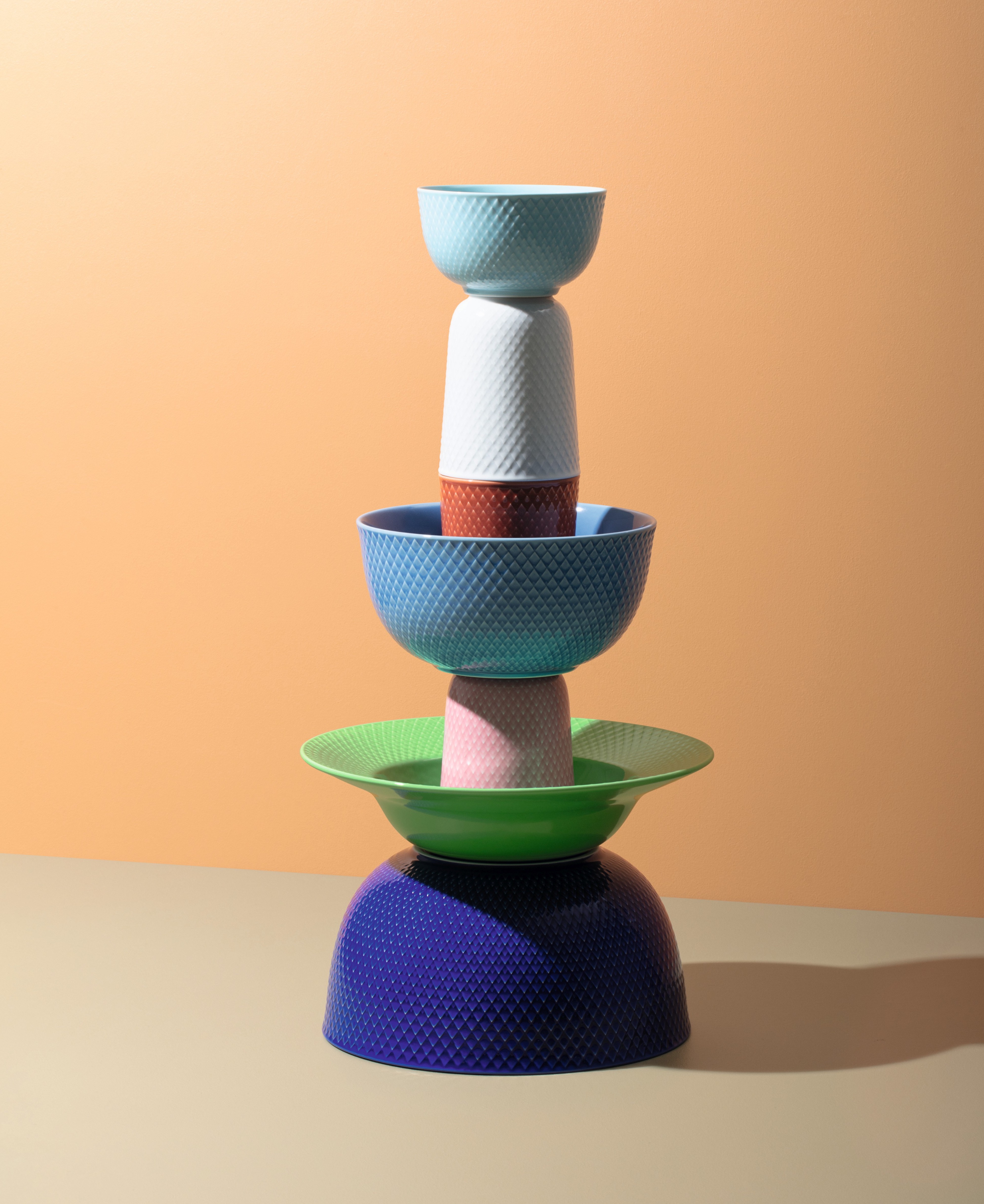 Nyheden er udviklet i samarbejde med designduoen Stilleben, der har håndplukket en regnbue af energiske og eklektiske glasurer med sikker sans for den personlige stil. Farvevejen er nøje afstemt og sætter forskellige farver på de enkelte steldele, der kan kombineres til et legesygt farveunivers eller bruges som enkeltstående statements i borddækningen.