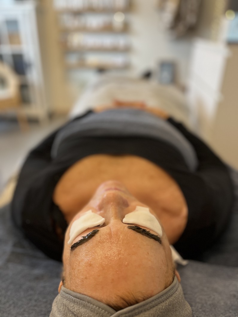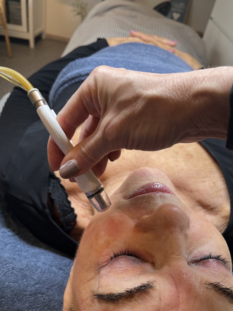 Derefter fugte selve mesoterapibehandling af ansigt og øjne med efterfølgende lysterapi. Afslutningsvis fulgte gelé hylaronsyremaske og collagen lysterapi.