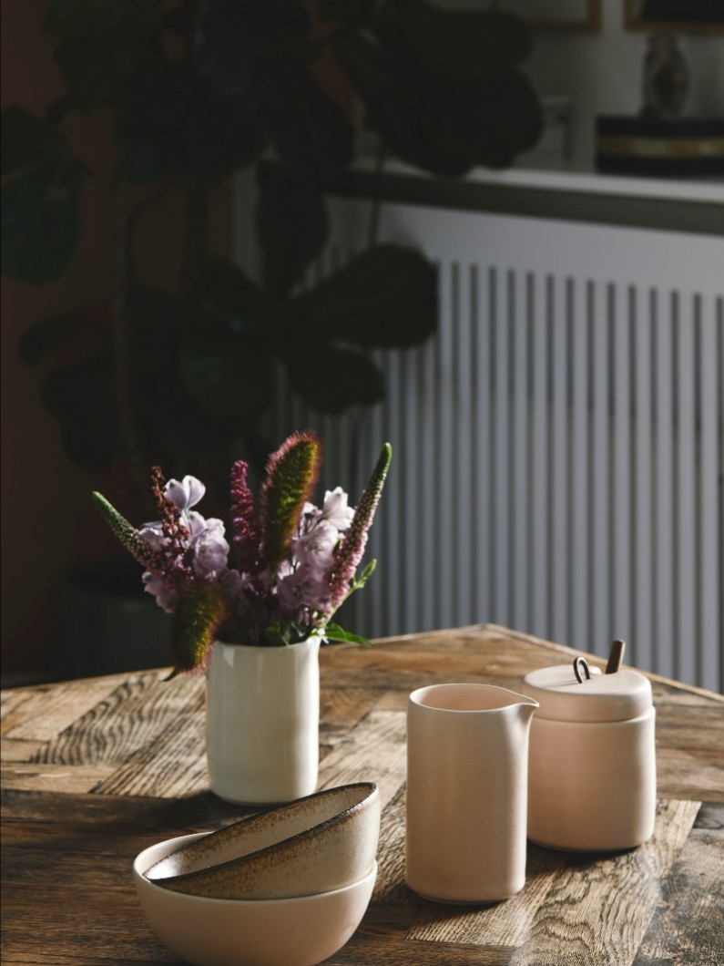 Keramikken har sit helt eget udtryk, og den indbyder til uhøjtidelige sammenkomster og hyggelige stunder. Kollektionen er en perfekt kontrast til ’Danish Summer’-kollektionen. Og samler man det hele i et skønt miks, så får man altså masser af personlighed på hylden hjemme i køkkenet, i vitrineskabet, eller når man dækker det hyggeligste brunchbord.