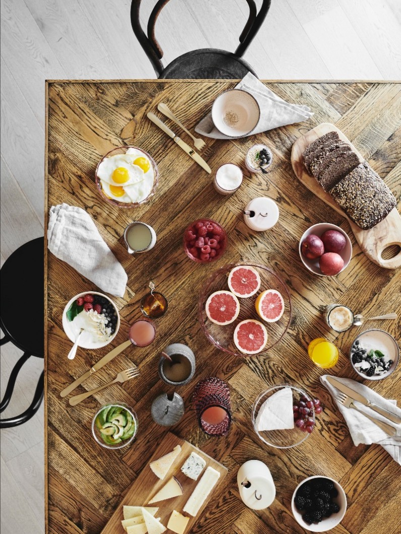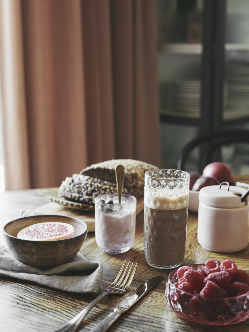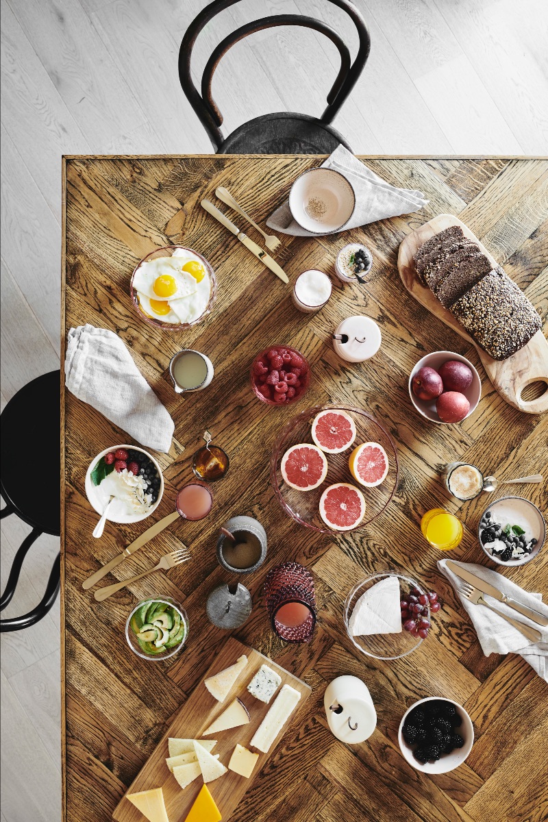 På brunchbordet her ses et miks af Kodanskas skønne keramik i alle afskygninger mikset med ’Danish Summer’-kollektionen. Supplerer man selv med skærebræt i træ, bestik i messing og lækker mad, så rammer man lige spot on i den vision, som Marie har med Kodanskas produkter – miks på kryds og tværs af det rustikke, det elegante og det smukke glas