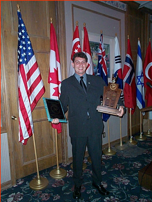 -- Nu skulle det så offentliggøres, hvem der havde klaret sig bedst på testpilotdelen. Igen blev mit navn læst op - og jeg måtte igen på scenen. Da var jeg næsten forlegen og synes, det var lidt for meget. Men da jeg havde sat mig ned for tredje gang, blev jeg kaldt på scenen endnu en gang. Nu fik jeg overrakt “The John Bishop Outstanding Test Pilot Award”, en halv meter høj statue formet som en ørn. Jeg var rørt til tårer - og alt det hårde arbejde var pludselig glemt, fortæller han.
