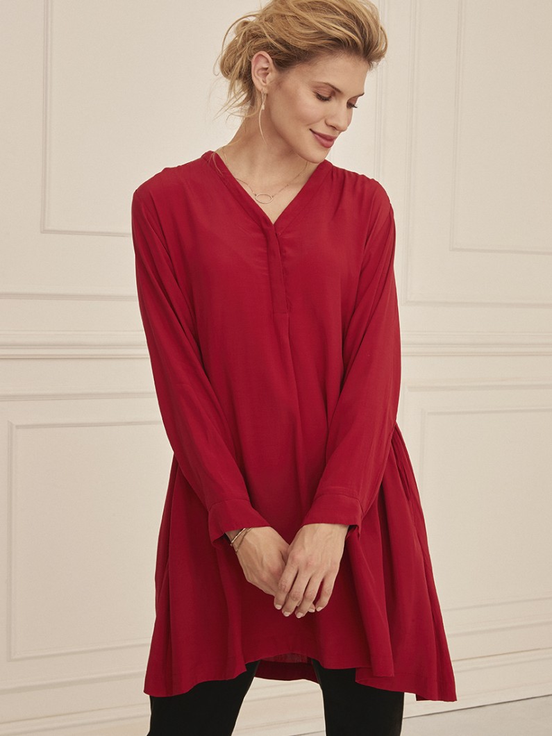 Denne røde tunika fra Masai byder på enkel, ensfarvet elegance.