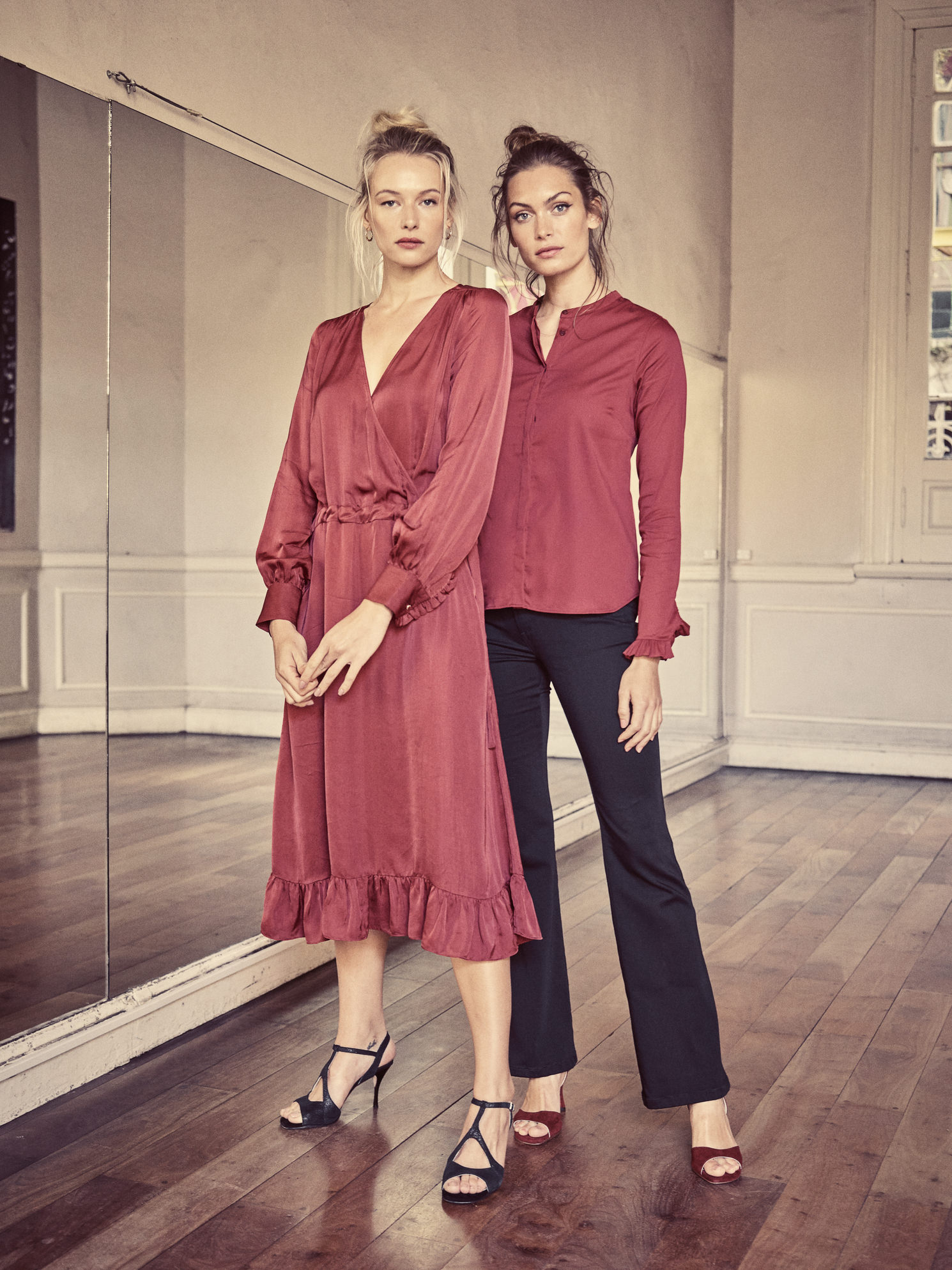 I kollektionen findes der blandt andet smukke skjorter i en afslappet pasform, som styles med bukser og jeans med vidde. Denne kollektion bærer præg af mørke toner med nuancer i dyb rød farve side om side med en delikat gylden brun nuance.