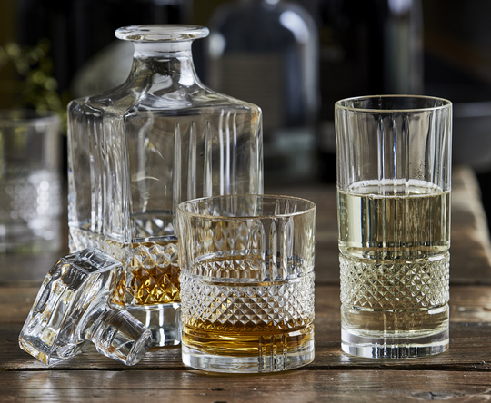 Så er der godt nyt fra Lyngby Glas og hvad enten du er til rød- eller hvidvin, boblende champagne eller en tung, bedøvende whisky i bedste 'Don Draper'-stil, fremhæver det retromoderne diamantmønster både de klare og mørke farver på allersmukkeste vis.