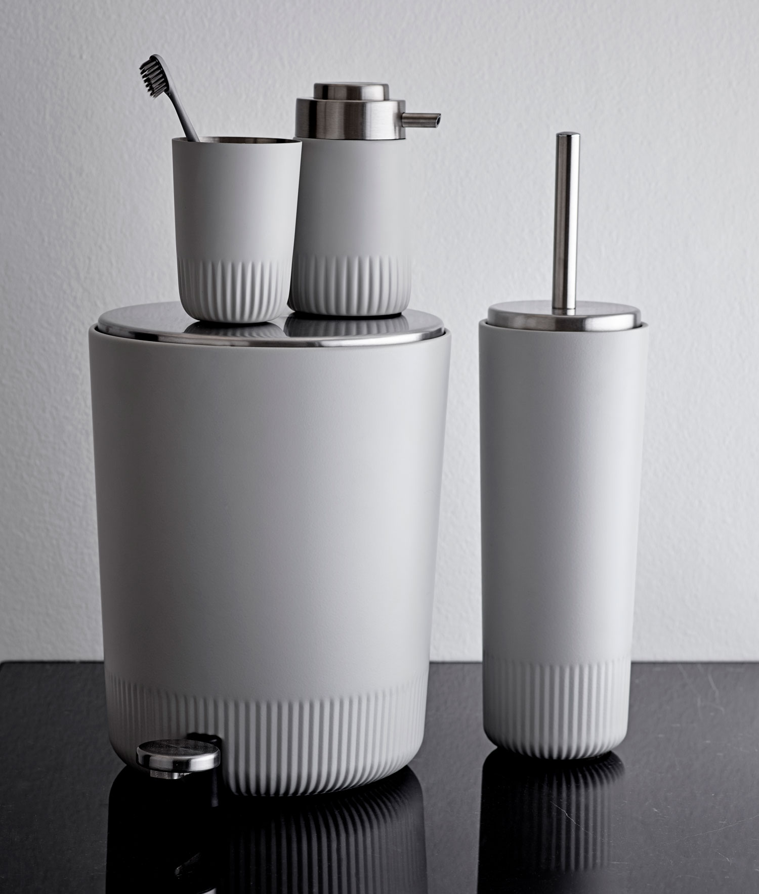 Serien består af en sæbedispenser, tandbørsteholder, toiletbørste og toiletspand og kommer i 'white', 'light grey', 'ash' og 'china blFind produkterne på www.soedahl.dk eller hos en lang række isenkræmmere og stormagasiner