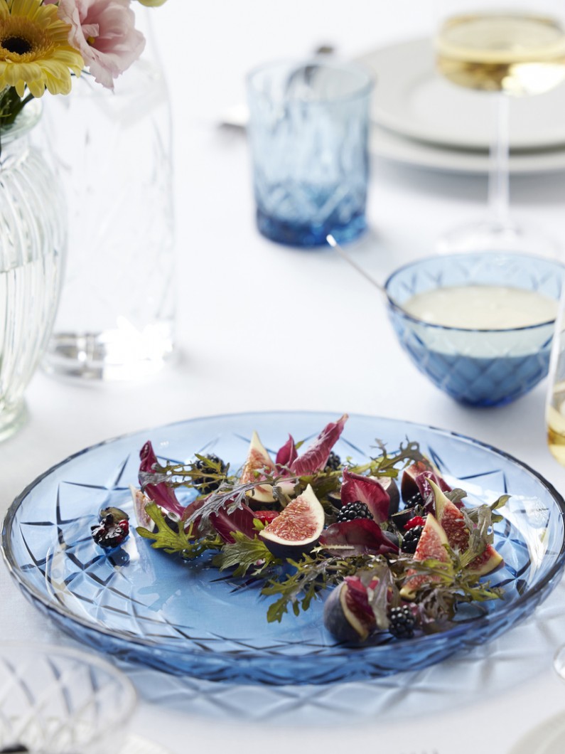 Den lækre salatskål med en diameter på 24 centimeter er også ny - og lige smuk fyldt med sommerens frugter eller nye kartofler som med salat. Ligesom resten af serien er den skabt af gennemfarvet glas og fås i en flot grøn, blå eller klar version.