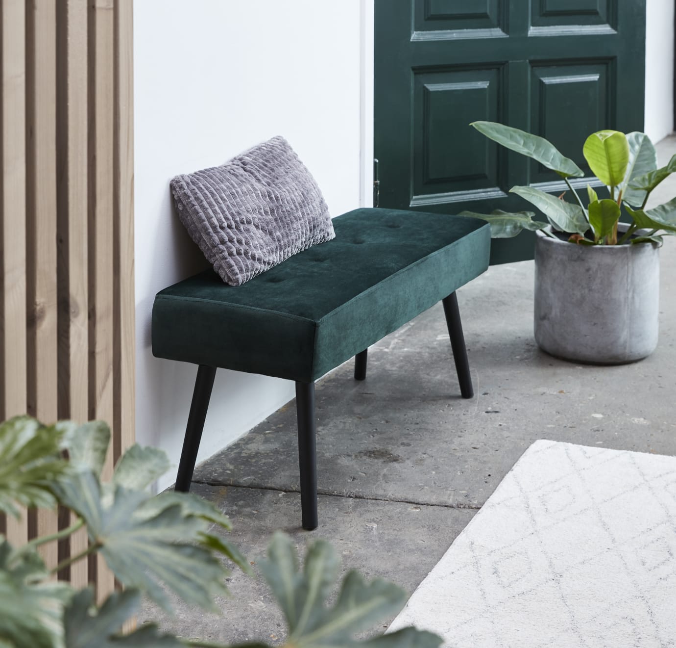 Vælg for eksempel den 70’er-inspirerede puf DARUP i mintfarvet velour eller taburetten WAVE i brændt orange eller mørkeblå. Puffen PADBORG i olivengrøn har et eksklusivt look med fine gulddetaljer.