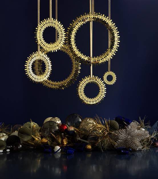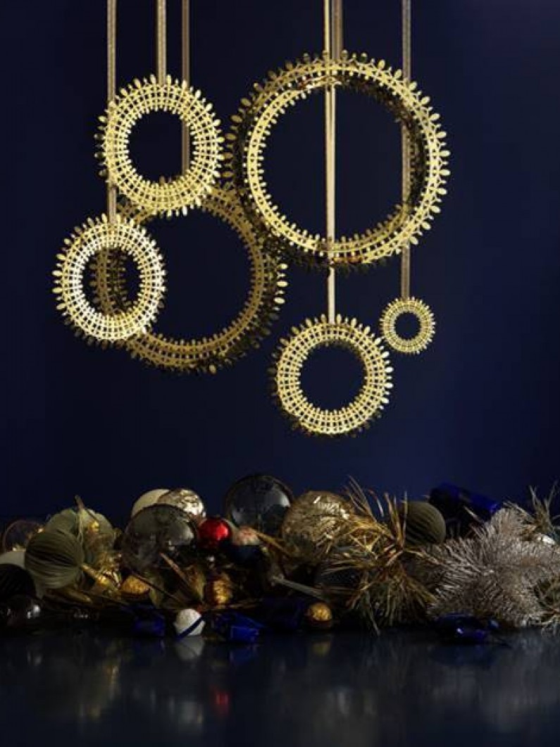 Bjørn Wiinblads kunstneriske DNA er uløseligt forbundet med ornamenteringer og guld. Inspirationen til den sprudlende maksimalisme hentede han ofte i Orienten, hvor gyldne kupler og eksotiske guder gjorde glorien til et tilbagevendende Wiinbladsk motiv – ikke mindst til jul, hvor den lysende krans også spiller en hovedrolle på flere af sæsonens nyheder.