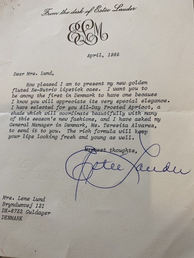 Lene Lund blev  inviteret til Paris af Chanel,  besøgte Esteé Lauder i New York flere gange og hun mødte også modeldronningen Eileen Ford her, og spiste jordbær med Oscar de la Renta, da den spanske modeskaber præsenterede en helt ny duft i København.