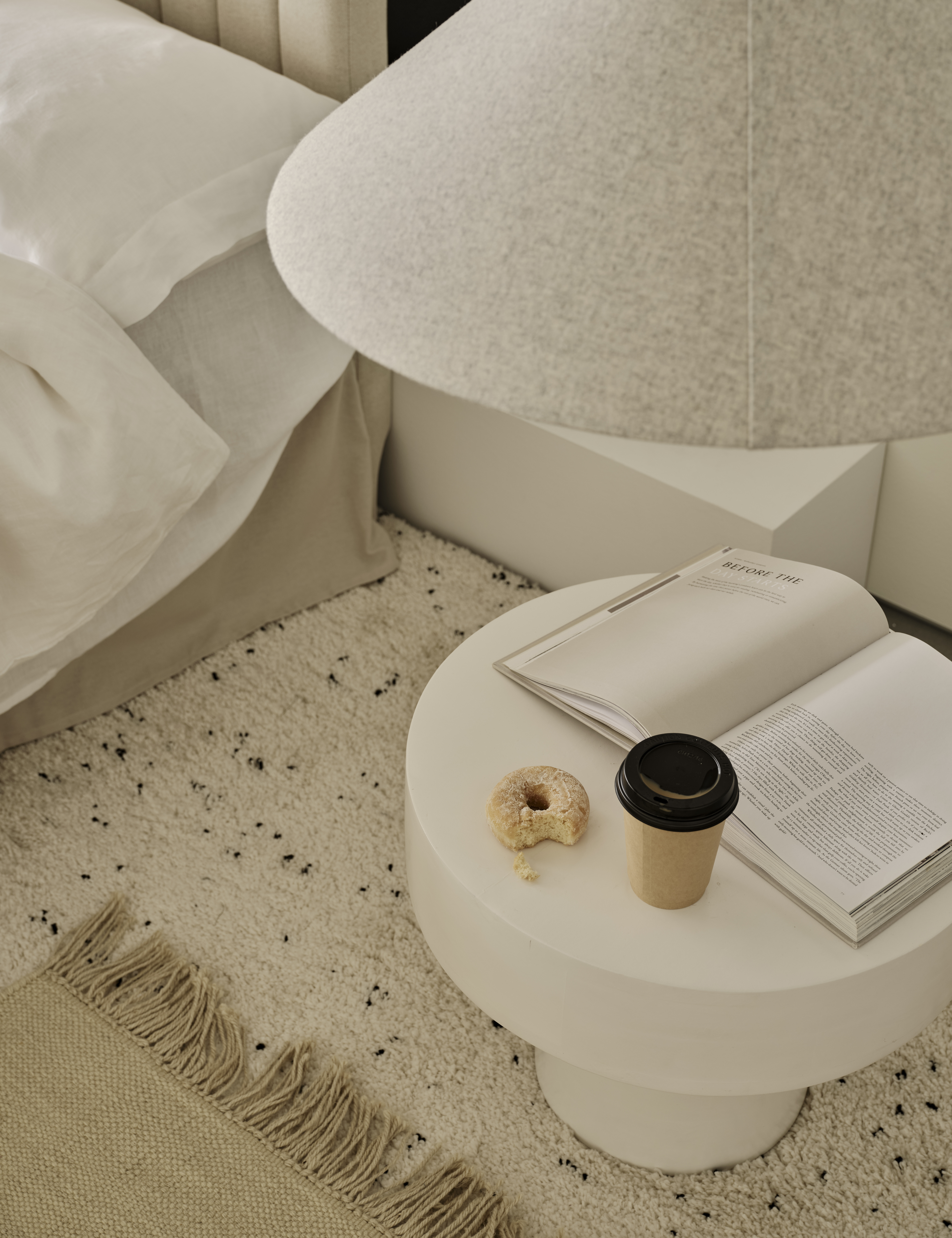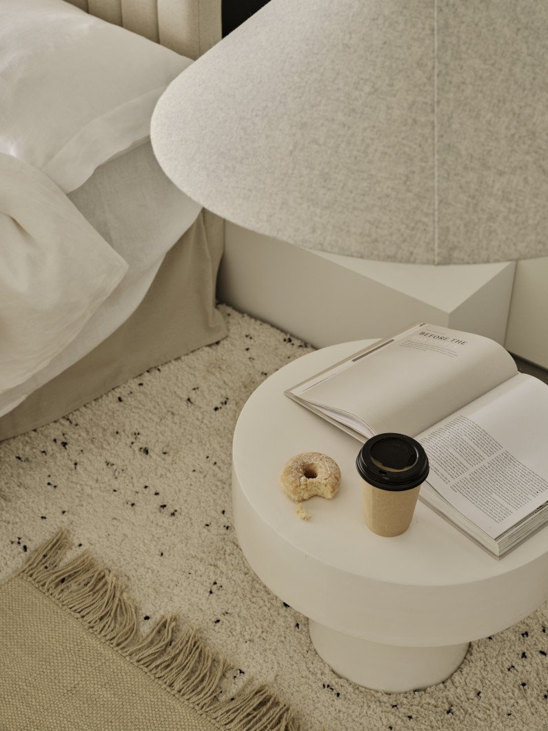 Og benyt det klassiske sidebord af hvidmalet mangotræ som sengebord. Du kan flytte bordet rundt i hjemmet efter behov.
