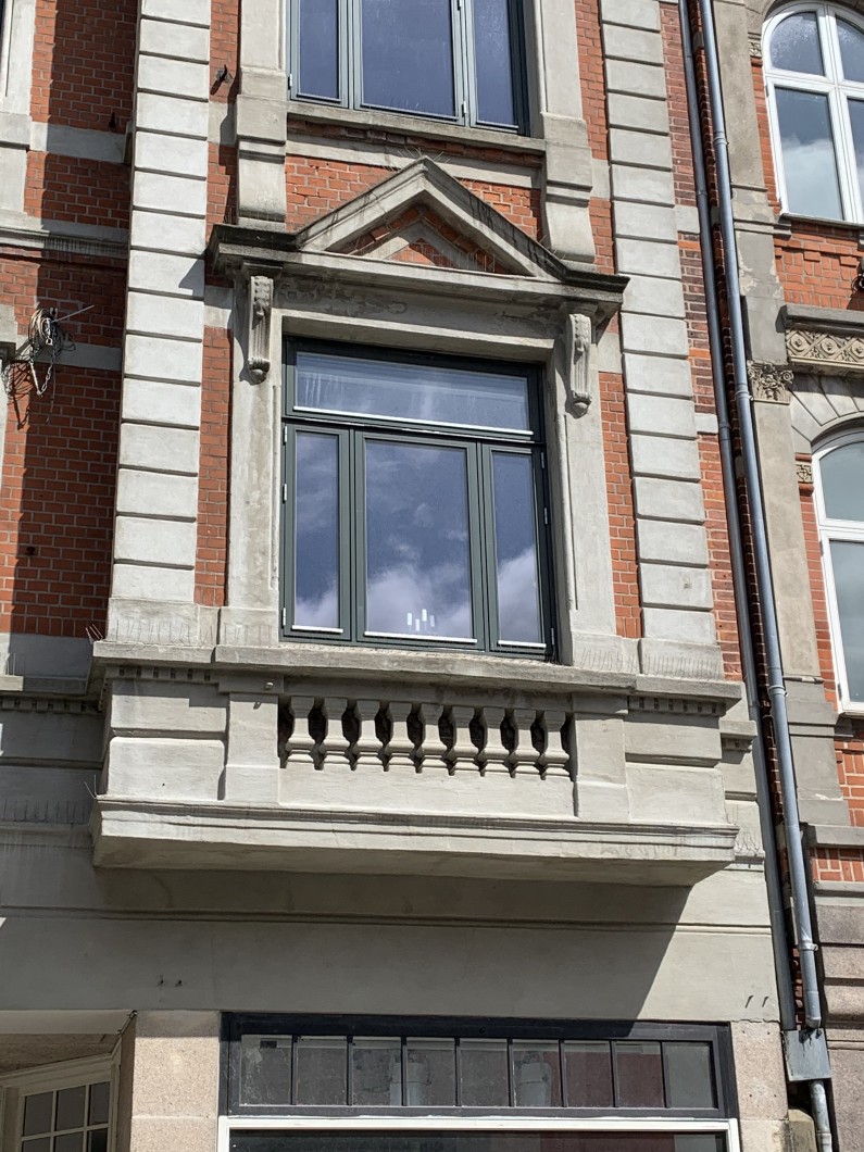 Herefter tog vi en tur ned ad strøget til den opgang, hvor vi kissemissede og skråt overfor lå det første sted, vi boede sammen, efter vi var blevet gift. Det var to værelser med en håndvask og en dyppekoger - og toilet i kælderen. Meget beskedne forhold! Men vi var glade.