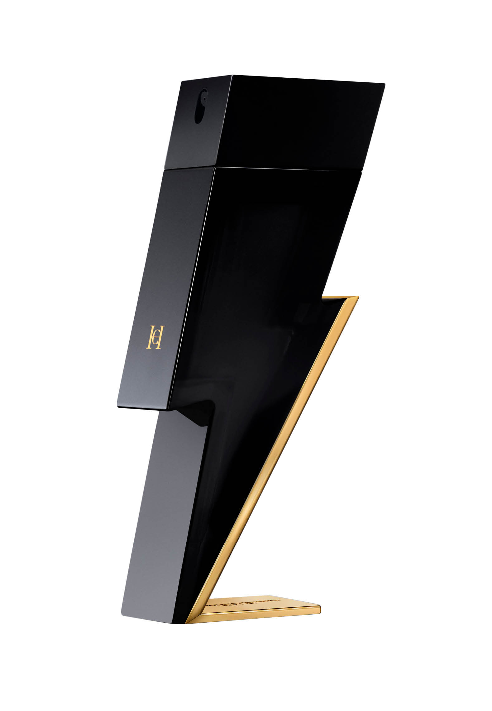 Flakonen er udformet som et lyn i en mystisk midnatsblå farve og står solidt fast på en gylden bund.