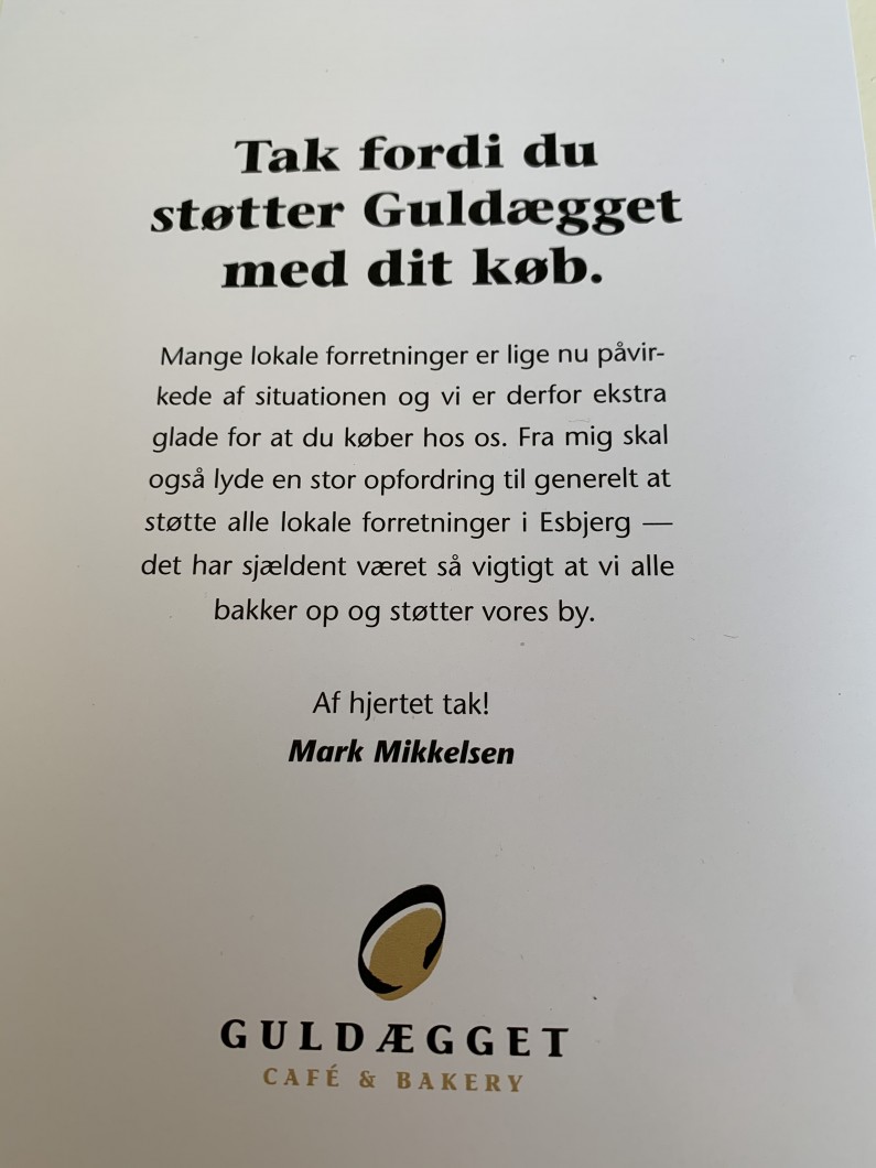 Vi har på Bryndumlund lige haft besøg af Guldæggets "Meals on Wheels", som har bragt os dejligt friskbagt brød til os. Tak for det og fordi der er nogle, der tager anderledes initiativer, når Danmark lukkes ned.