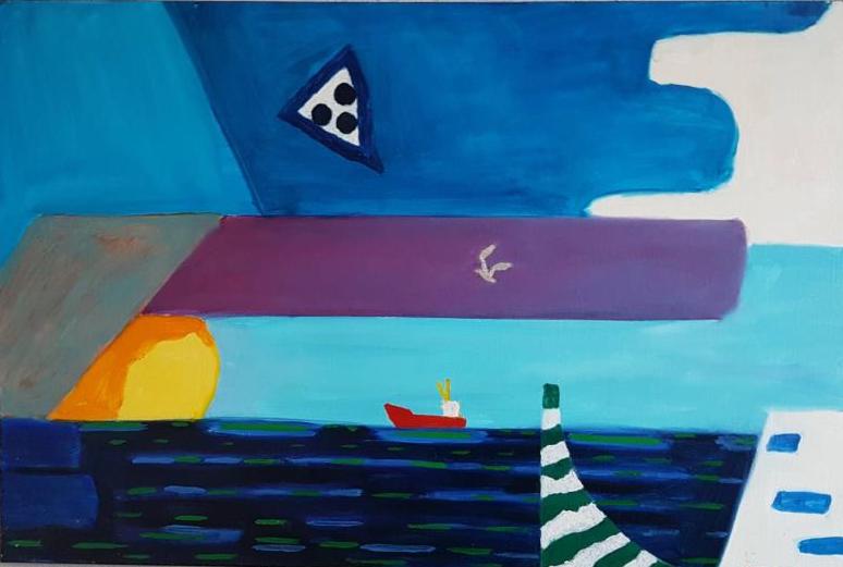 I sit atelier der har den kunstakademi-uddannede maler skabt de smukkeste værker, karakteriseret af flotte stærke og klare farver, hvor sammenstødet mellem naturalisme og abstraktion skaber bevægelse.