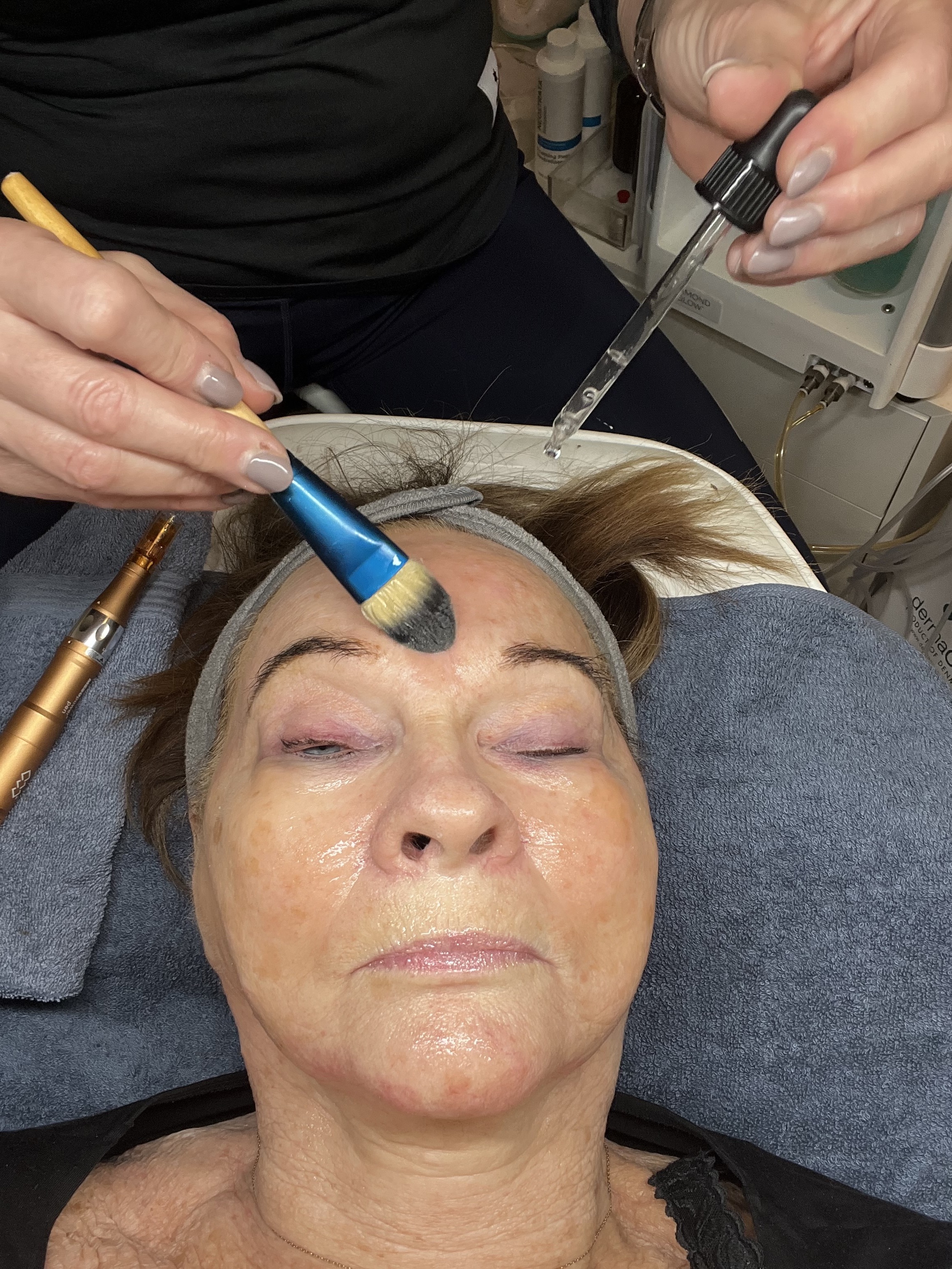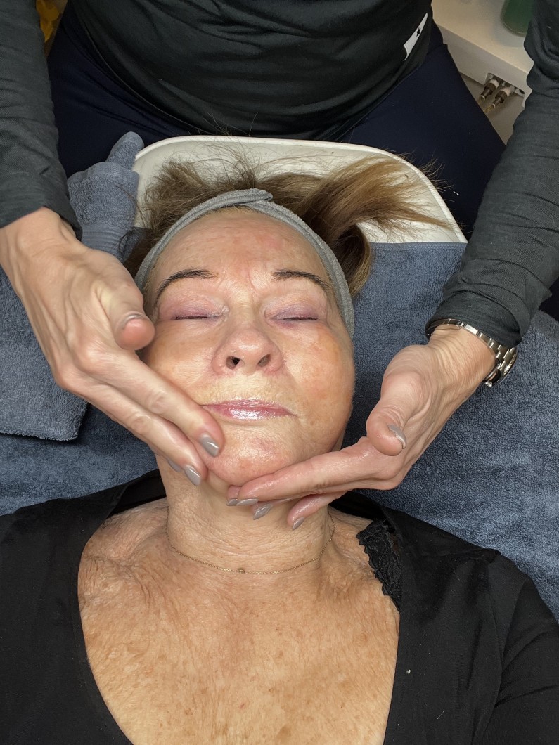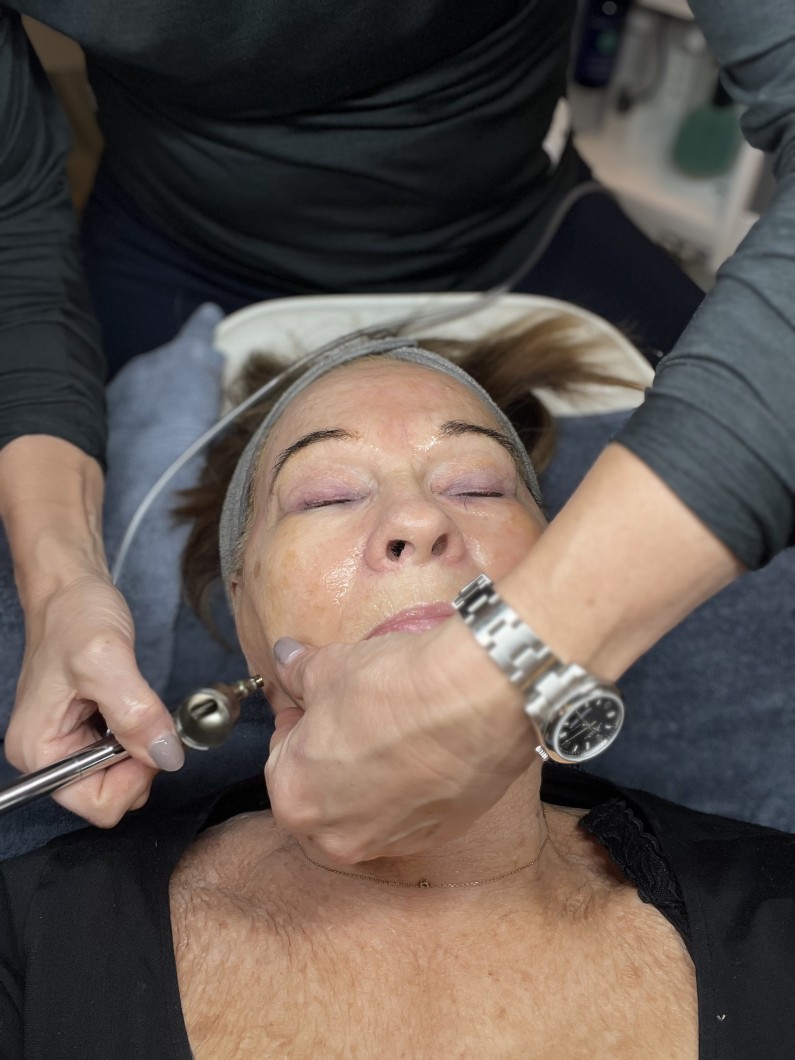 Derefter fugte selve mesoterapibehandling af ansigt og øjne med efterfølgende lysterapi. Afslutningsvis fulgte gelé hylaronsyremaske og collagen lysterapi.