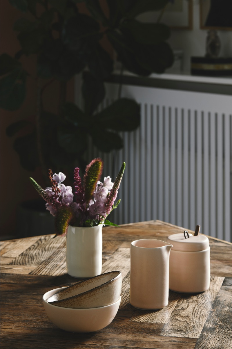 Keramikken har sit helt eget udtryk, og den indbyder til uhøjtidelige sammenkomster og hyggelige stunder. Kollektionen er en perfekt kontrast til ’Danish Summer’-kollektionen. Og samler man det hele i et skønt miks, så får man altså masser af personlighed på hylden hjemme i køkkenet, i vitrineskabet, eller når man dækker det hyggeligste brunchbord.