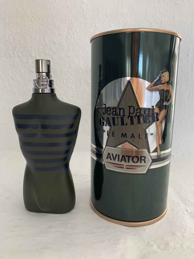 Le Male Aviator er den nye eau de toilette til mænd og den markedsføres som maskulin, energisk og attraktiv. Le male Aviator er en kamppilot i de velkendte sømandsstriber. Med en atletisk torso og en militær-inspireret grøn farve, sætter den fokus på fantasier om ægte helte.
