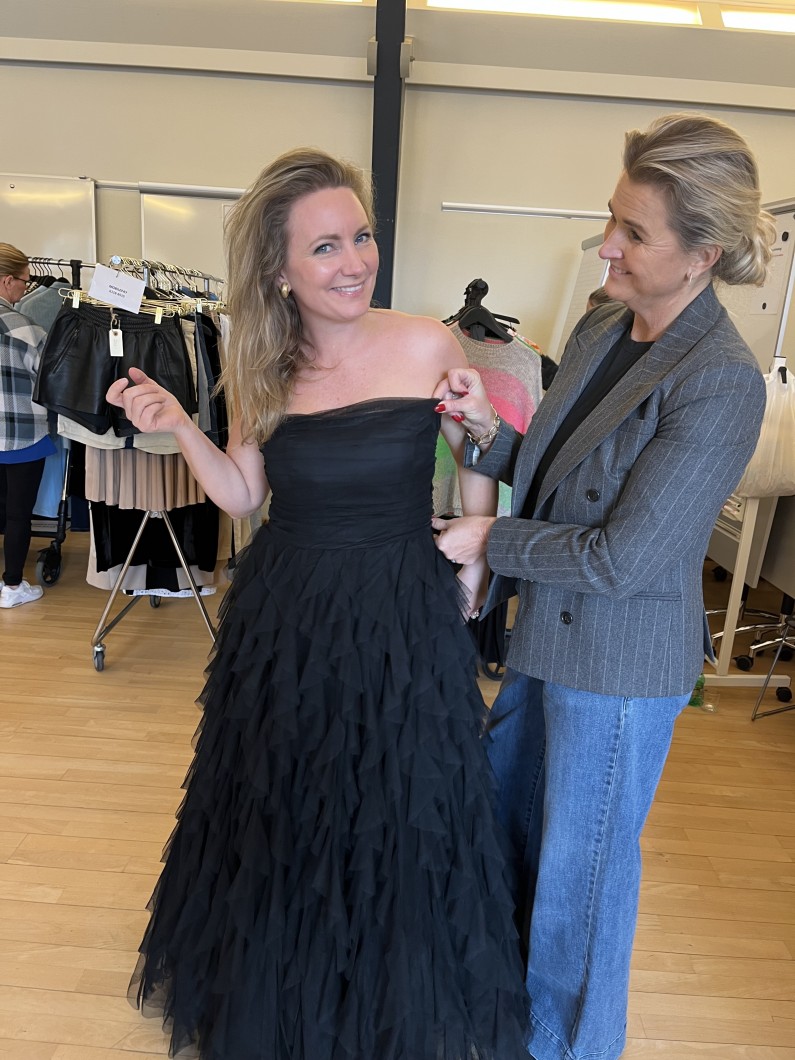 - En af de kvinder, som nød godt af de gode tilbud var operasanger Kirstine Bonde, der i sit arbejde har brug for eksklusivt tøj, og hun fandt blandt andet en smuk sort stropløs flæsekjole, som nu kan komme med ud at synge.