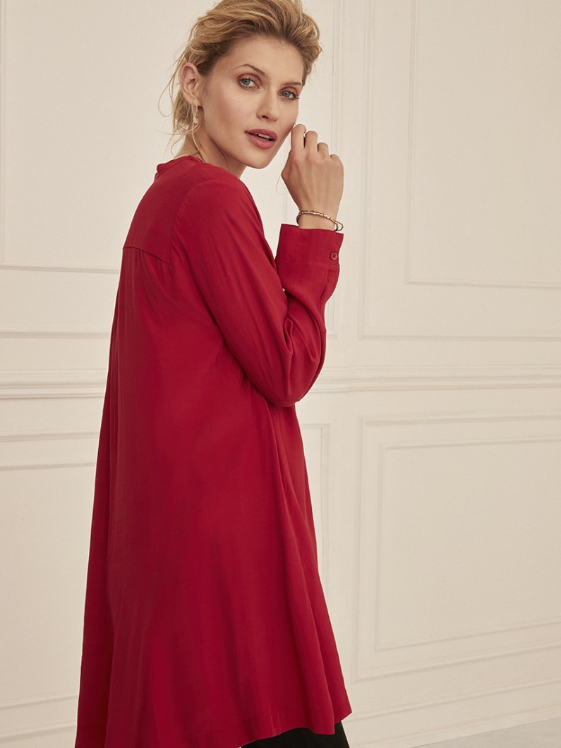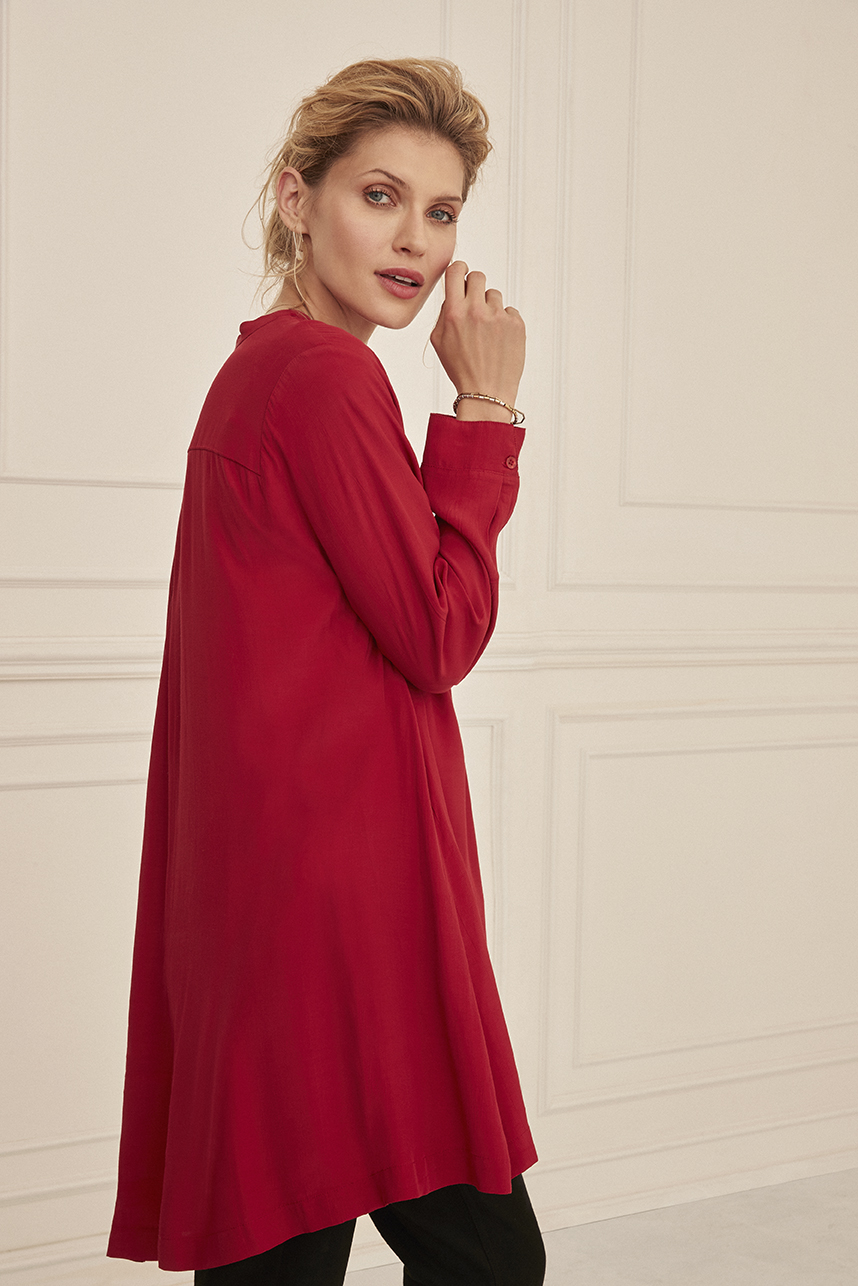 Denne røde tunika fra Masai byder på enkel, ensfarvet elegance.