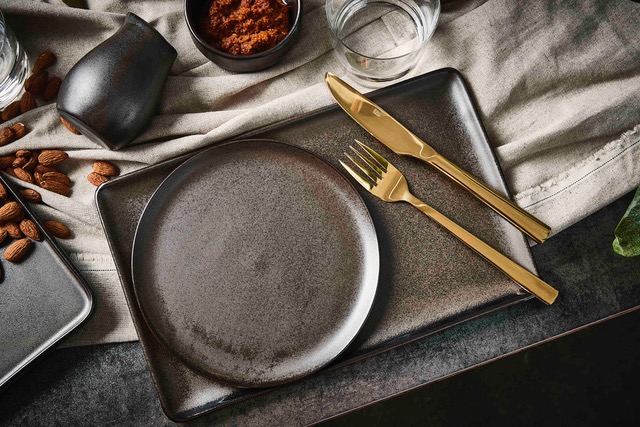 Aida udvider nu stentøjsserien RAW Metallic Brown med rektangulære tallerkener i to størrelser samt et stort rektangulært fad til serveringen - flotte nyheder, som skaber en markant stilren borddækning.