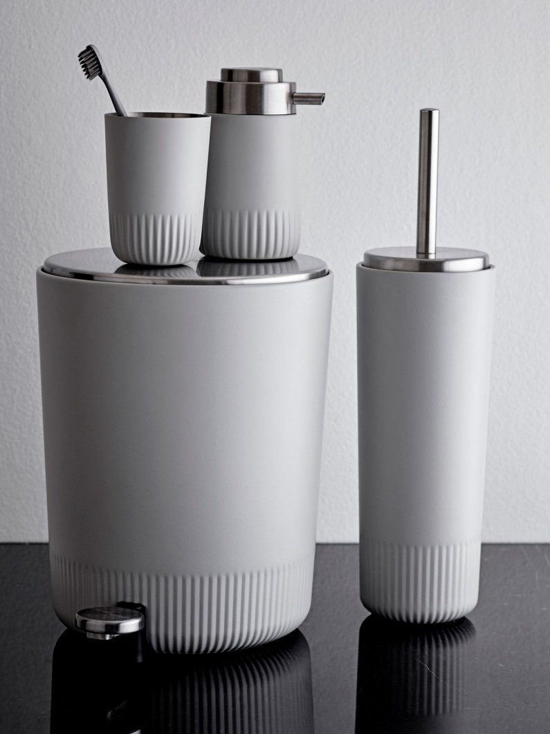 Serien består af en sæbedispenser, tandbørsteholder, toiletbørste og toiletspand og kommer i 'white', 'light grey', 'ash' og 'china blFind produkterne på www.soedahl.dk eller hos en lang række isenkræmmere og stormagasiner