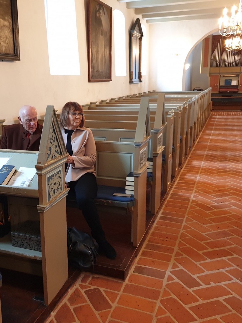 På grund af Corona-smitten var kirken forbeholdt os - bedsteforældre, forældre og faddere. Desværre blev den lidt større fest aflyst. Da kirken kun var "bemandet" med præst, medbragte faderen sin guitar og moderen blot sin smukke sangstemme og vi sang "Nu titte til hinanden" og "Du som har tændt millioner af stjerner".